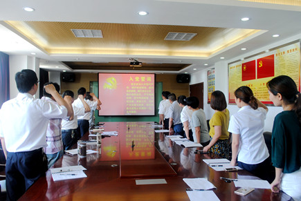 圖為全體黨員重溫入黨誓詞 會議第一項內(nèi)容由該所黨支部書記王小勇帶領全體黨員重溫入黨誓詞,王小勇要求各位黨員牢記宗旨,做一名合格黨員。接下來全體黨員觀看《廖俊波:永遠的“樵夫”——一名共產(chǎn)黨員的樂與愛》視頻,學習市委書記王昌榮在全市領導干部會議上的講話精神等。大家結(jié)合高速精神大討論,對照先進典型和“四講四有”合格黨員標準,聯(lián)系個人思想和工作實際,認真開展批評與自我批評,查找不足,剖析原因,明確方向,并提出改進措施。 會后,王小勇強調(diào),各位黨員要做到對黨忠誠,個人服從組織,樹立理想信念,強化黨員意識,做好本職工作。 鄭瑛芝