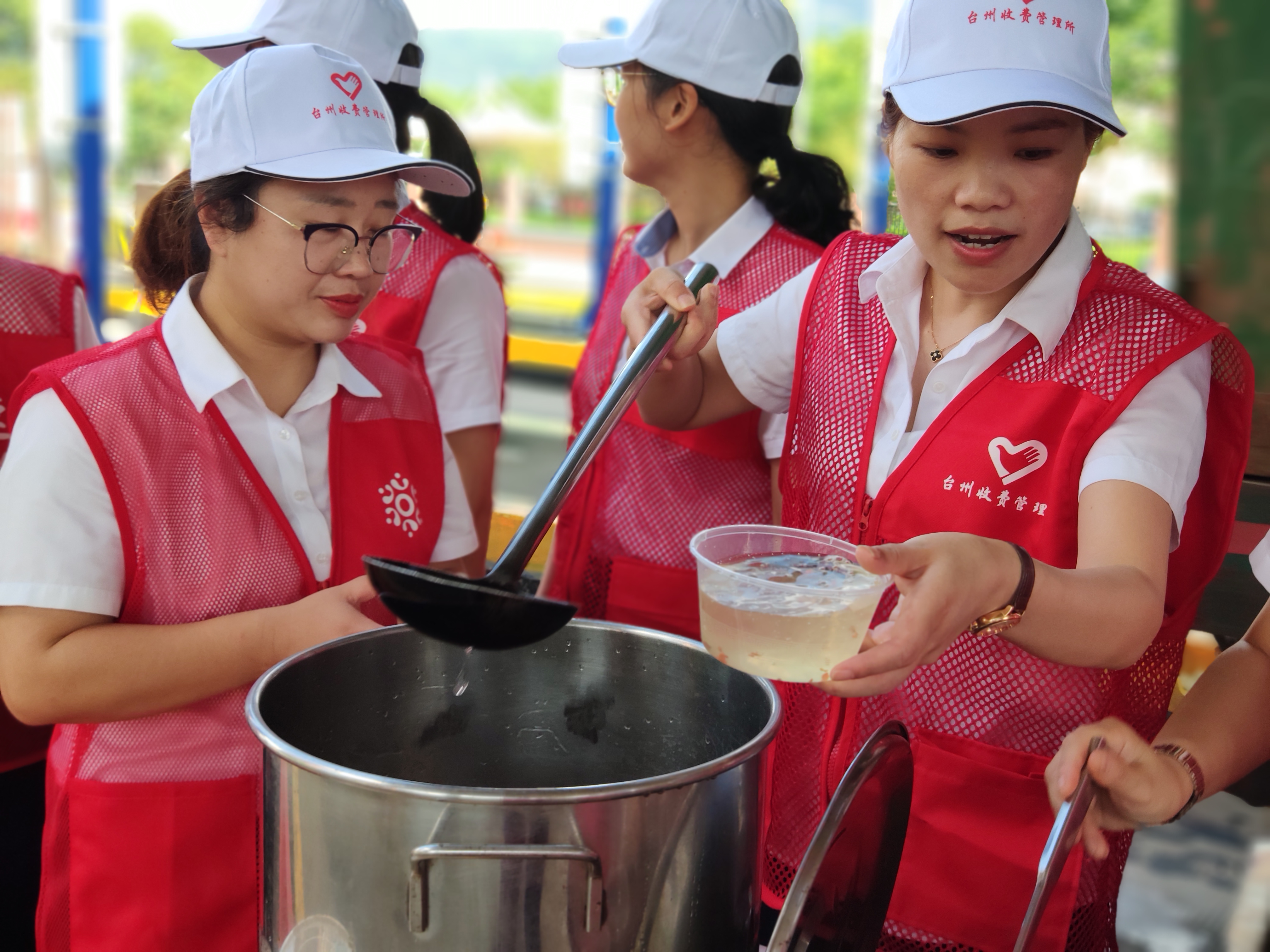 圖為志愿者給司乘遞上飲品 在送清涼的同時,志愿者們還溫馨提醒司機朋友們不要疲勞駕駛,高溫天氣中注意行車安全,并為不熟悉路況的司乘指引路線。此外,工作人員還在“便民小藥箱”中補充了防暑等應急藥品,以應對高溫中暑等突發狀況。 一杯杯清涼的飲品,幾句簡短而溫馨的交流,拉進了志愿者們與司乘人員之間的距離,司乘人員的好評將整個活動現場推向高潮。 該所共計送出200多份清涼飲品,受到廣大司乘人員的一致好評。大家用實際行動傳遞文明,延伸了服務的同時,更展示出臺州高速人的良好形象。 楊雅芬