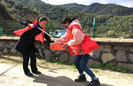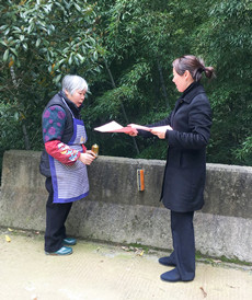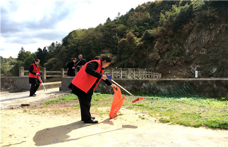 圖為女職工向當地老人宣傳清明文明祭掃 然而,女職工們卻不“安分守己”,以這樣的方式來慶祝自己的節日:她們兵分二路,一路擔起森林防火宣傳員,向過往群眾發放《清明文明祭掃和森林防火倡議書》,并對上了年紀的村民耐心講解倡議書內容,將臺州高速的文明服務從工作中延伸到了生活中。一路環繞水庫去清理其邊上的垃圾,一上午下來,收獲還真不少,共清理廢紙、飲料罐、塑料袋等廢棄物若干袋,在打造“生態文明”中率先垂范,擔其責,盡其力。