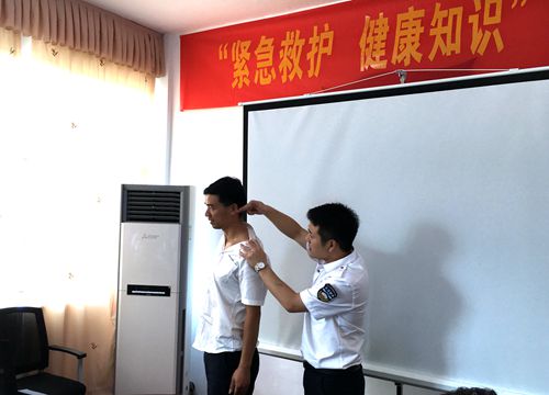 圖為授課現場 授課老師向水平為大家講述了現場心肺復蘇術:判斷呼吸→高聲呼救→擺體位→打開氣道→人工呼吸及如何進行按壓與吹氣,隨后他授以簡單的醫學理論知識,對高血壓、心臟病、糖尿病等疾病的預防作了普及。當談及上班族普遍面臨的不樂觀的嚴峻現實:受肩周炎、頸椎病、腰椎間盤突出等職業病困擾時,向老師以現場演示的方式教大家幾招傳統的中醫方法——穴位按摩,鼓勵大家自己動手,通過按摩這種最直接的方法,緩解不適。