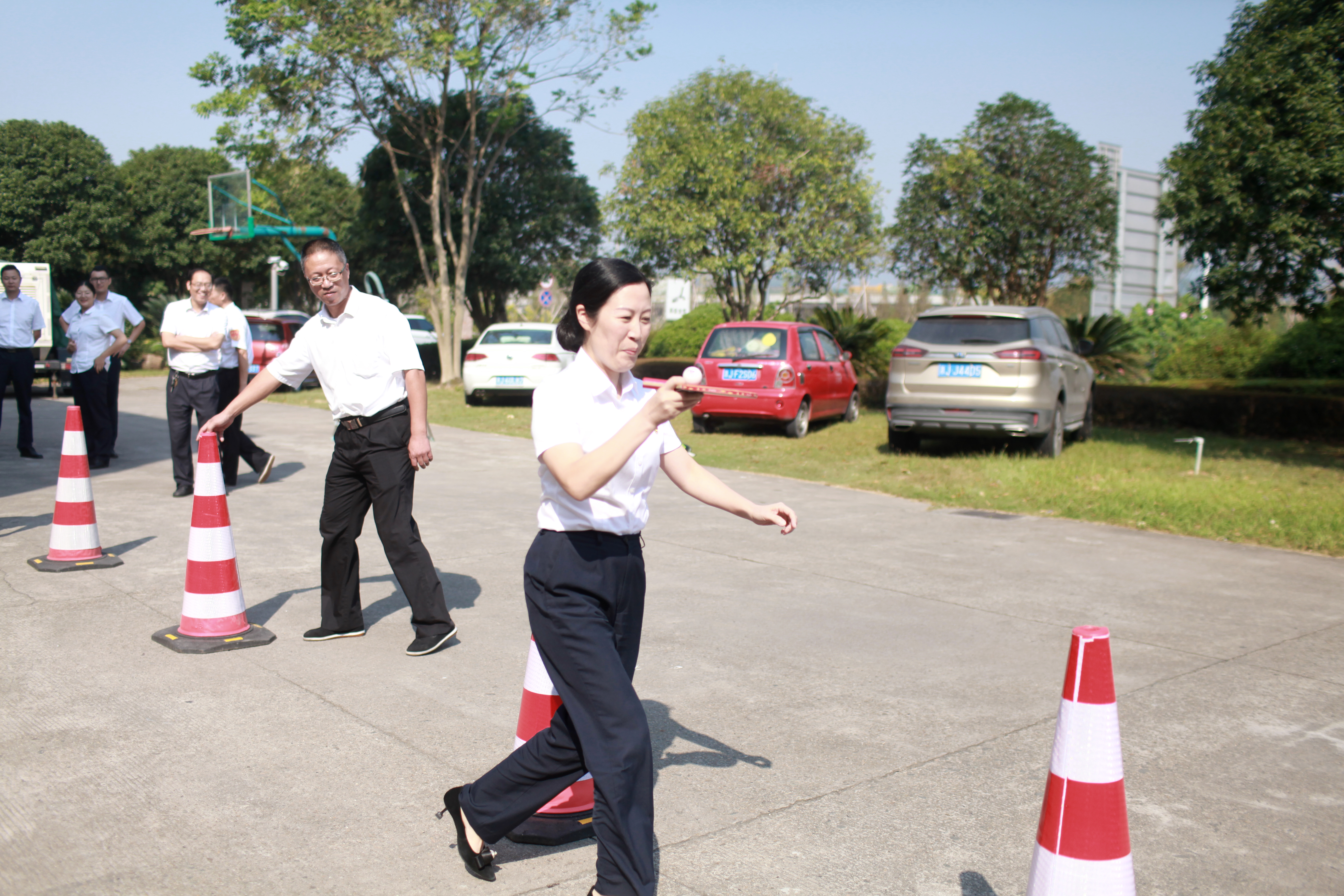 圖為活動(dòng)現(xiàn)場(chǎng) 活動(dòng)共由五個(gè)參賽隊(duì)伍組成,趣味活動(dòng)項(xiàng)目都包含廉潔的寓意,《“廉”接不斷》將乒乓球置于球拍上,參賽隊(duì)員單手拿球拍繞小紅帽往返共20米;《飛鏢射“貪”》用飛鏢射圓形靶中的貪字;《蒙眼刺“貪”》參賽隊(duì)員手持牙簽蒙住眼睛走到對(duì)面將氣球上的貪字刺破;《反腐倡廉》用實(shí)心球?qū)⒈}g球瓶推到;《填“廉”字》將規(guī)定粒數(shù)的彈珠用筷子夾到“廉”字的孔位上;《徐徐清風(fēng)》將第一個(gè)茶杯里的乒乓球依次吹到最后一個(gè)茶杯里。員工們?cè)诟鞣N廉潔趣味活動(dòng)中加深了對(duì)廉潔文化的認(rèn)知,營(yíng)造良好的廉潔氛圍,促進(jìn)基層廉政文化建設(shè)。
