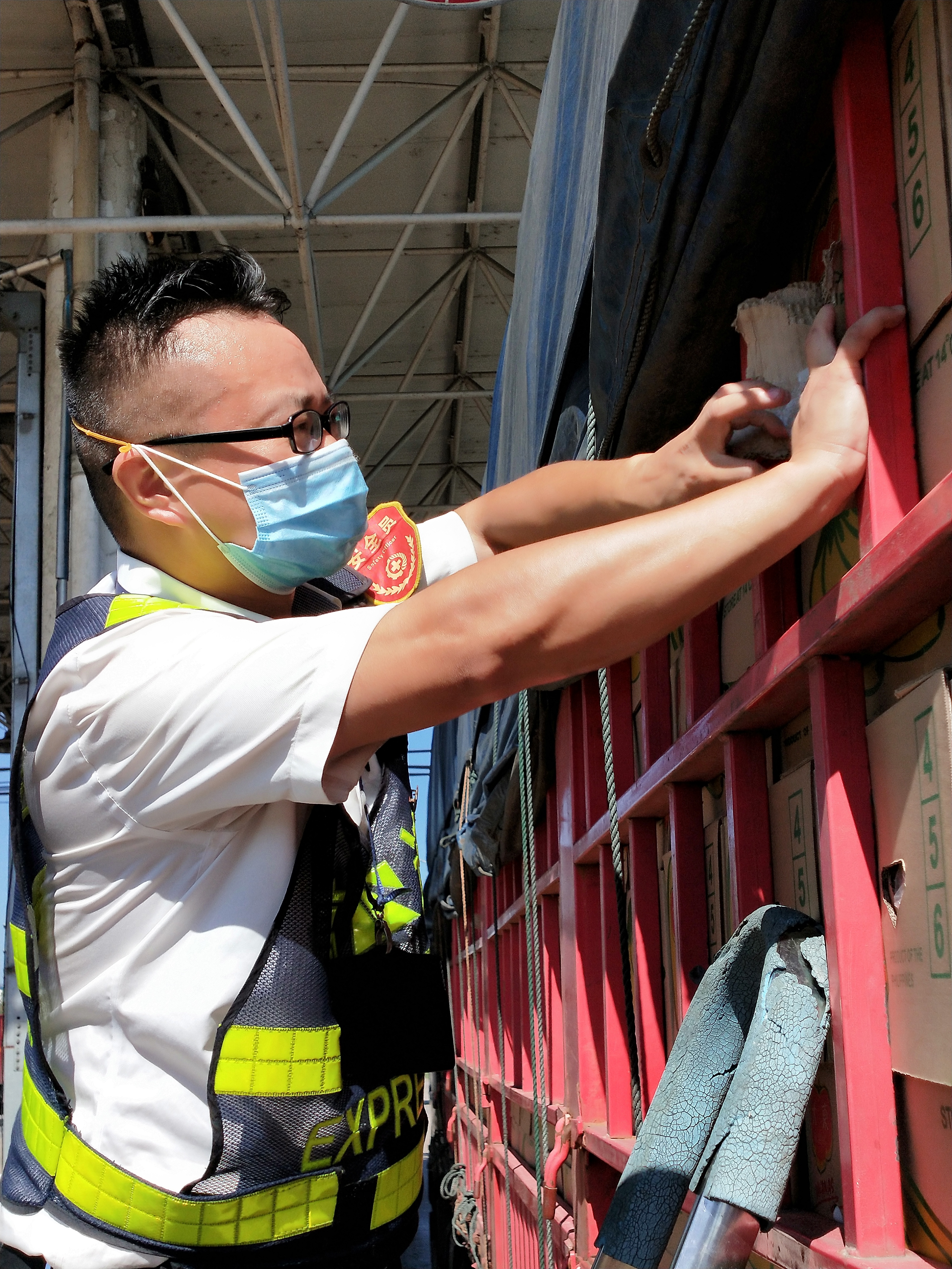 檢查綠農(nóng)車,遇到攀爬驗(yàn)貨時(shí),車輛欄桿因高溫炙烤至少在四五十度以上,臺(tái)州南收費(fèi)所班長(zhǎng)周冬子笑著說(shuō):“現(xiàn)在的車欄桿都‘辣手’了,腳底板也像踩了‘風(fēng)火輪’。” 話音還未落,只見(jiàn)他蹭蹭幾下,已然爬上貨車,一邊檢查貨物一邊用袖子蹭掉臉上豆大的汗珠,被曬得黝黑發(fā)紅的皮膚在烈日下格外醒目。綠農(nóng)車開(kāi)走后,他顧不上滿身汗水,拿起了掃把開(kāi)始打掃灑落在車道上的綠農(nóng)產(chǎn)品。因?yàn)樗溃@些灑落的農(nóng)產(chǎn)品,如不及時(shí)清理,在太陽(yáng)曝曬后將會(huì)更加刺鼻,影響收費(fèi)站的形象。 熱浪滾滾,卷不走收費(fèi)員們工作的熱情;夏日炎炎,燃不盡收費(fèi)員們堅(jiān)守的意志。他們用執(zhí)著在高溫下書(shū)寫愛(ài)崗敬業(yè),用責(zé)任和擔(dān)當(dāng)保障著高速的平安暢通。 項(xiàng)丹穎