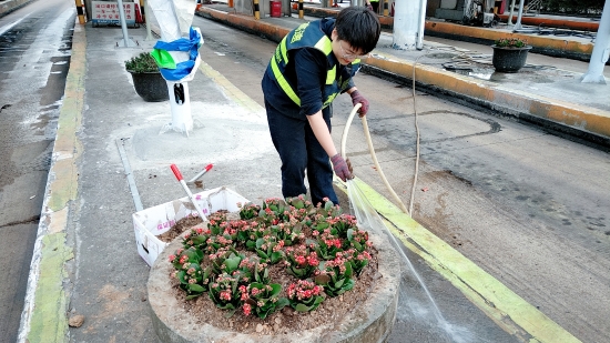 圖為栽種現(xiàn)場(chǎng) 現(xiàn)場(chǎng),志愿者們身穿反光背心,拿著鋤頭、鐵鍬、水桶,帶著事先買(mǎi)來(lái)的小花苗,來(lái)到收費(fèi)區(qū)域的島頭開(kāi)始栽花活動(dòng)。所領(lǐng)導(dǎo)班子成員身體力行,帶領(lǐng)大家投入到緊張的勞動(dòng)中。大家挽起衣袖,不怕臟、不怕累,有的松土、有的種花、有的填土,有的澆水……有序地將一棵棵花苗栽進(jìn)土壤。 通過(guò)大家的共同努力,經(jīng)過(guò)近4個(gè)小時(shí)的時(shí)間,400棵樹(shù)苗被栽進(jìn)了20多個(gè)大花盆中,美化了整個(gè)車(chē)道環(huán)境。 此次栽花活動(dòng)增強(qiáng)了大家的生態(tài)環(huán)保意識(shí)和綠化意識(shí),大家紛紛表示添花更要護(hù)花,要將綠化活動(dòng)意識(shí)長(zhǎng)期付諸實(shí)踐,共同建設(shè)美麗溫嶺西收費(fèi)站。 鄭霞霞