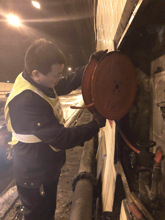 圖為檢查人員在檢查消防卷盤 大溪嶺隧道所負(fù)責(zé)人向來(lái)客介紹,隧道清洗工作需集團(tuán)下屬的施救中心、維養(yǎng)中心、隧道所員工,以及外協(xié)單位、養(yǎng)護(hù)公司等人員的積極配合,分工合作,將利用兩天時(shí)間完成大溪嶺雙向隧道的清洗維修任務(wù)。張金財(cái)再次稱贊表示,控制隧道清洗時(shí)間能有效地緩解地方交通壓力、節(jié)能減排。 2018年度春運(yùn)即將開始,各方檢查人員借此次隧道清洗機(jī)會(huì),全面排查影響隧道暢通的安全隱患,做好隧道內(nèi)設(shè)備設(shè)施的維修保養(yǎng)工作,為創(chuàng)造平安節(jié)日提供保障。 陳智慧