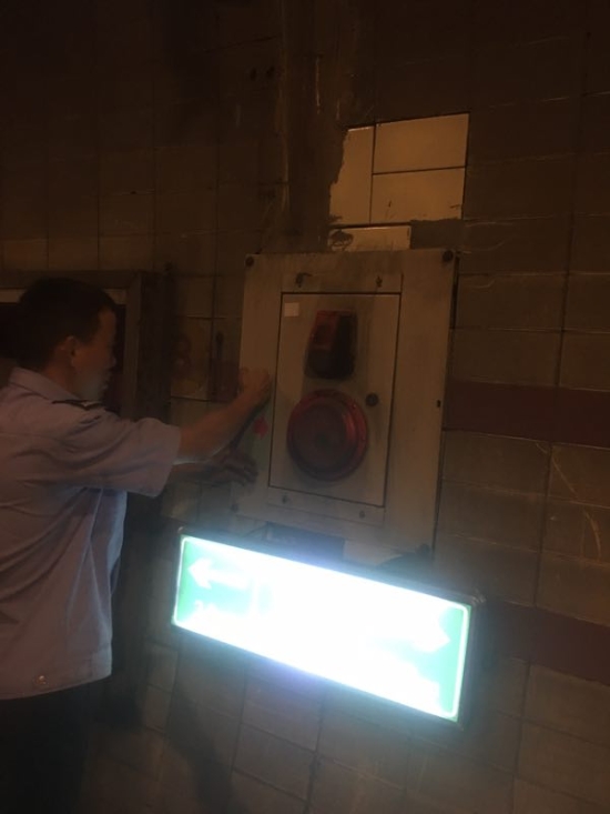 圖為張貼火災(zāi)報(bào)警提示標(biāo)語(yǔ) 此次隧道清洗工作主要針對(duì)隧道內(nèi)的機(jī)電設(shè)施維修與保養(yǎng),清潔監(jiān)控和照明燈,修復(fù)故障攝像機(jī);檢修消防設(shè)施,如火災(zāi)報(bào)警采用點(diǎn)火測(cè)試、手動(dòng)報(bào)警、緊急廣播和電話測(cè)試,以及檢查消防箱;隧道內(nèi)指示標(biāo)記檢查,如人通、汽通檢查保養(yǎng),隧道風(fēng)機(jī)檢測(cè),貼安全提示標(biāo)志,修復(fù)提示燈等。 隊(duì)員們放棄休假,加班加點(diǎn),借著隧道清洗一類施工的有利條件,把隧道內(nèi)需報(bào)修的各種設(shè)備進(jìn)行維修和保養(yǎng),保障了隧道內(nèi)機(jī)電、消防設(shè)施的正常運(yùn)行,排除安全隱患,為即將到來(lái)的中秋小長(zhǎng)假提供明亮、安全的隧道行車環(huán)境。 陳智慧