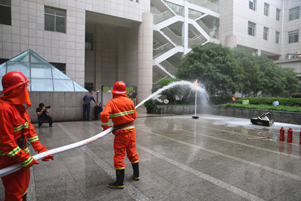 上圖為滅火模擬演練現(xiàn)場