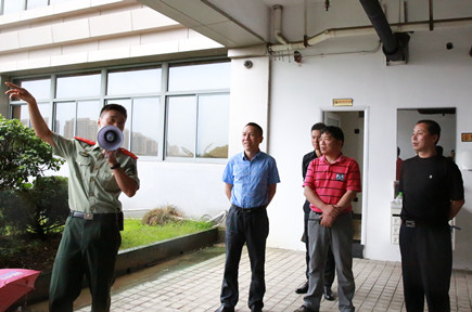 圖為公司總經(jīng)理張建平到現(xiàn)場觀摩演練、聽專業(yè)安全消防員演練點評