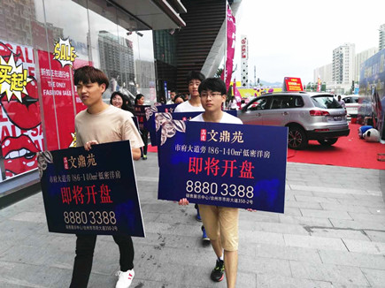圖為文鼎苑銷售部人員在商場內(nèi)開展宣傳活動 在活動現(xiàn)場,參加人員一邊做陶藝,一邊詢問樓盤詳細情況,氣氛十分熱烈。同一時間,在萬達廣場和銀泰商場內(nèi),文鼎苑銷售部的帥哥美女們手持樓盤開盤廣告宣傳牌,他們一個個面帶笑容、朝氣蓬勃、專業(yè)細致地為前來咨詢的客戶講解樓盤的具體情況。宣傳隊伍所到之處,吸引了大批客戶的關(guān)注。 以上活動是文鼎苑項目首批開盤前期營銷推廣中的其中一個環(huán)節(jié)。為營造良好的銷售氛圍,在前期,仁和公司通過大型戶外廣告、微信公眾號實時更新、新聞媒介重點發(fā)布等,陸續(xù)進行多方位媒體宣傳攻勢。同時,謀劃舉辦了“文鼎苑家風征集活動”、立夏、母親節(jié)、“520與愛相約”、端午節(jié)、兒童節(jié)等節(jié)假日專題宣傳活動。此外,還安排了銷售人員在周末深入椒江拆遷區(qū)進行拓客派單活動。 目前,高速房產(chǎn)集團的員工們正戮力同心,奮力拼搏,為全力打響文鼎苑首期開盤炮而努力奮戰(zhàn)。 包啟曉