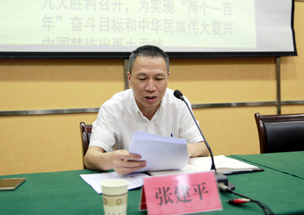 圖為公司黨委副書記、總經(jīng)理張建平傳達有關會議精神