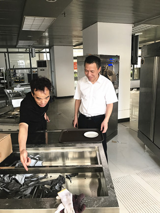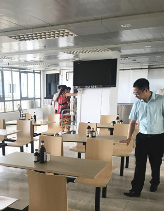 圖為公司副總經理董阿林于7月1日到大樓檢查指導食堂整改情況