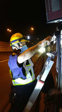 圖為工作人員安裝消防燈燈泡 大溪嶺—湖霧嶺隧道全長(zhǎng)4116米,為保障隧道內(nèi)行車安全、暢通、舒適,定期組織安排清洗隧道兩壁墻體、邊溝,檢修內(nèi)部各項(xiàng)機(jī)電設(shè)施成了維養(yǎng)中心每季必不可少的工作之一。而每次清洗檢修必將涉及封道,為最大程度減少因封道對(duì)社會(huì)造成的負(fù)面影響,中心工作人員早在一周前就對(duì)隧道內(nèi)各項(xiàng)損壞機(jī)電設(shè)備進(jìn)行摸底統(tǒng)計(jì),以便合理制定維修方案和安排施工人員。 12號(hào)早上7點(diǎn),隨著封道工作就緒,兩組清洗隊(duì)伍分別從隧道中部開(kāi)始向兩頭清洗,六組專業(yè)燈具維修人員站在貨車腳手架上由北往南逐個(gè)推進(jìn),發(fā)現(xiàn)一盞修復(fù)一盞,或更換燈管、或更換觸發(fā)器、或更換鎮(zhèn)流器,對(duì)于一些同時(shí)有多個(gè)配件壞死或腐蝕嚴(yán)重的燈具就直接采取整體更換措施,大大提高了工作效率。而中心工作人員除了現(xiàn)場(chǎng)全程協(xié)調(diào)管理以外,還負(fù)責(zé)修復(fù)隧道兩壁逃生標(biāo)志及報(bào)警電話等多個(gè)指示牌。按照之前制定的計(jì)劃,六人兵分兩組由隧道兩頭分別向中間修復(fù),這樣既能與其他工作同時(shí)進(jìn)行又不造成相互干擾。另外一人則配合隧道所一起在登高車協(xié)助下,對(duì)洞內(nèi)各類攝像頭進(jìn)行逐個(gè)清理,全場(chǎng)人員各司其職,各盡其責(zé),現(xiàn)場(chǎng)一派忙碌的景象。 4公里多長(zhǎng)的隧道,由于流動(dòng)性差,洞內(nèi)空氣質(zhì)量比霧霾嚴(yán)重?cái)?shù)倍,僅一只口罩根本凈化不了廢氣,但由于時(shí)間緊,任務(wù)重,中心隊(duì)員和施工人員顧不上惡劣的環(huán)境,努力和時(shí)間賽跑,兩日下來(lái)共修復(fù)(清理)損壞燈具100余套,各類標(biāo)志指示牌40余塊,攝像頭30余個(gè),恢復(fù)了隧道內(nèi)各項(xiàng)機(jī)電設(shè)施的正常運(yùn)行,排除一切安全隱患,有效保證了隧道安全暢通。 項(xiàng)寅曉