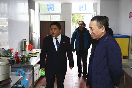 圖為集團副董事長、總經理張建平檢查臺州南收費所食堂