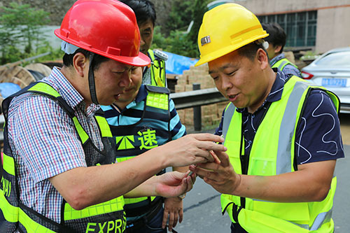 圖為集團(tuán)總工程師江輝了解施工中出現(xiàn)的情況 江輝還聽取了施工進(jìn)度的情況匯報(bào)。江輝表示隧道施工是一項(xiàng)艱苦的工作,施工人員在惡劣的環(huán)境中工作,工種危險(xiǎn)系數(shù)高、體力消耗特別大,工程部和施工方要多關(guān)心一線人員的生產(chǎn)生活。江輝要求施工方要加強(qiáng)對(duì)安全和人員管理,制定切實(shí)有效的施工技術(shù)安排,時(shí)刻預(yù)防隧道塌方,地下水涌和瓦斯氣體等突發(fā)狀況,消除各種惡劣環(huán)境因素的影響,確保大溪嶺-湖霧嶺隧道機(jī)電改造項(xiàng)目成功收官。