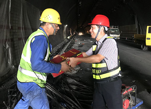 8月20日,已經(jīng)是三伏天的尾聲了,雖然經(jīng)過連續(xù)多個(gè)臺(tái)風(fēng)的洗禮,然而天氣依然炎熱。集團(tuán)總工程師江輝心系一線,在工程部負(fù)責(zé)人的陪同下,深入大溪嶺-湖霧嶺隧道機(jī)電改造項(xiàng)目工地現(xiàn)場(chǎng),慰問正在高溫中奮戰(zhàn)的一線施工人員。