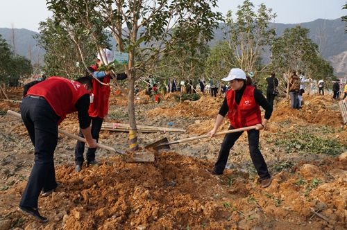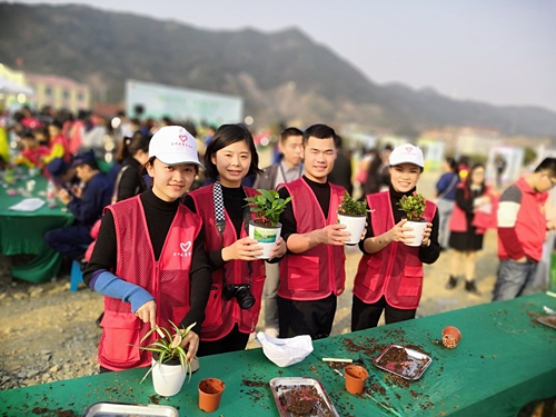 圖為臺州市青年志愿者協(xié)會成立大會現(xiàn)場 當天是一年一度的植樹節(jié),公司還組織各部門、收費所20多名青年志愿者乘車前往路橋飛龍湖,參加由共青團臺州市委組織的以“擁抱灣區(qū) 青春力量”為主題的青少年植綠護水活動。