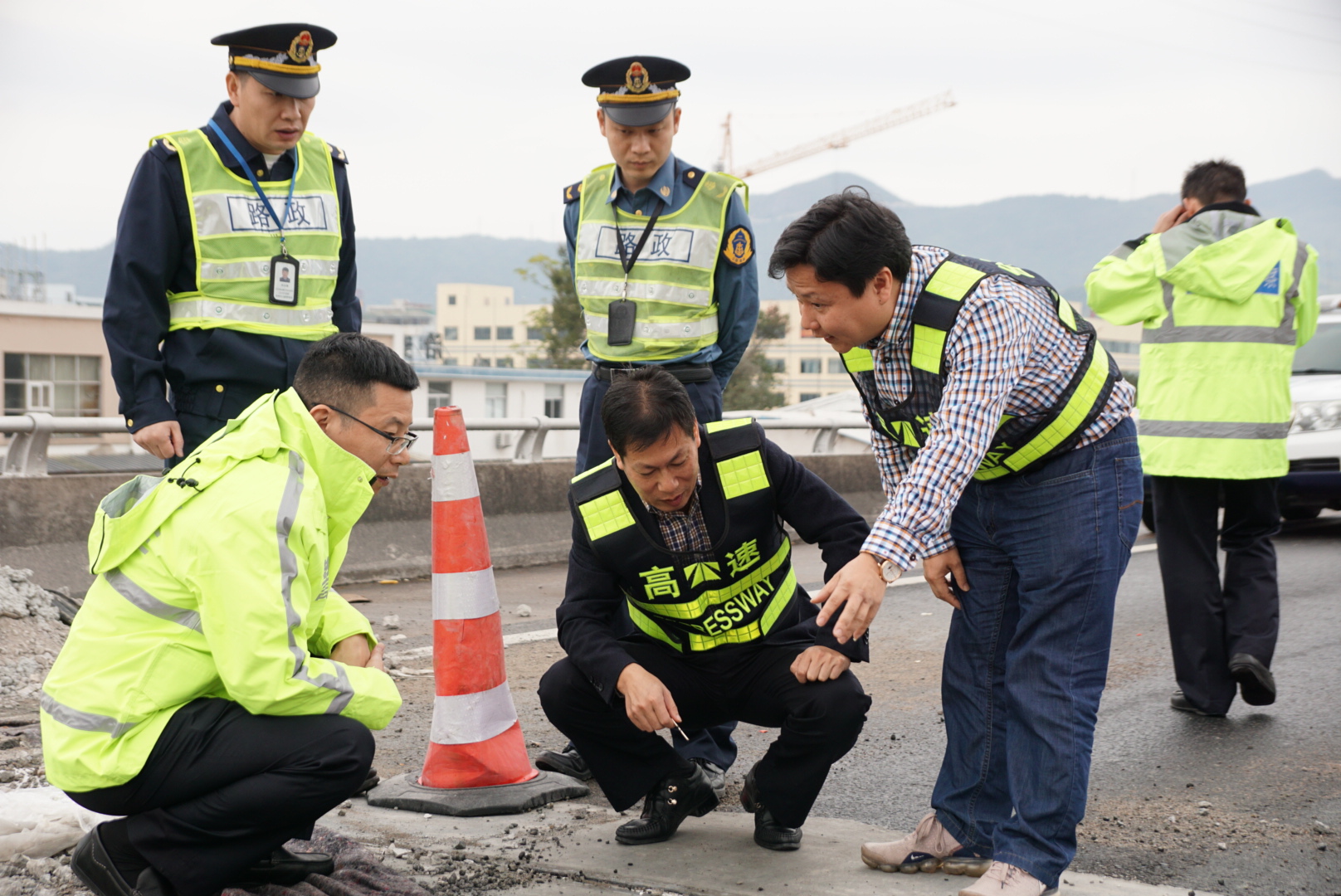集團聯合高速交警、路政檢查第一階段斷流施工情況 |