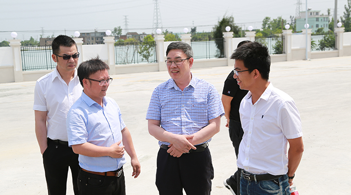 圖為陳文波一行在山海公司瀝青拌合站現場調研