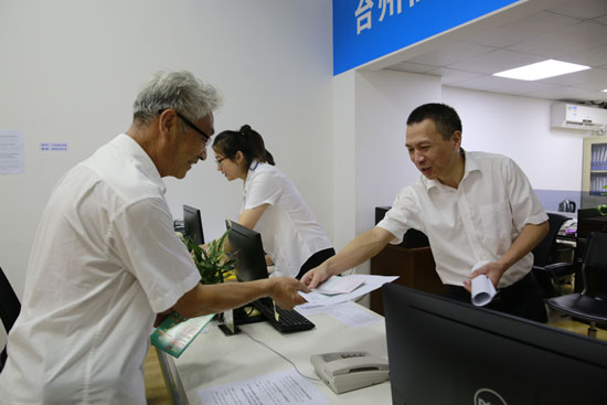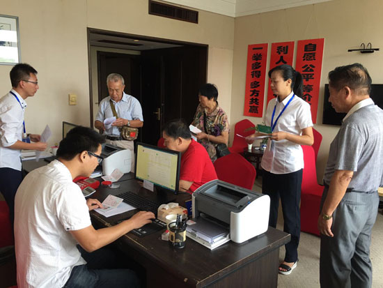 據椒江收購點工作人員朱海燕介紹,集團高齡股東較多,如果他們前來辦理,工作人員會及時上前攙扶股東到審核區坐下,核對股東是否確權,審核身份證、銀行卡等資料,如果一切無誤便直接帶領股東到辦理區。