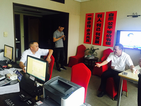 圖為集團副董事長、總經(jīng)理張建平在天臺收購點詳細詢問收購工作具體開展情況 張建平向各地方政府前期對公司股權收購工作的支持表示感謝,他介紹了當?shù)嘏_州高速股權收購進展情況,同時闡明收購工作中存在的困難,需要地方政府繼續(xù)對我們的工作給予支持和幫助。三地政府都表示一定會全力支持這項工作。仙居縣分管公司股權收購的常務副縣長說,“放心吧,我們一起想辦法,先從持股較多的法人股入手,再化大力氣做小股東工作,一定會圓滿完成任務。” 張建平一行先后來到三地股權收購點,向收購一線的工作人員表示親切的問候。張建平對大家的工作給予肯定,感謝所有人勤勤懇懇,無私付出,并希望大家繼續(xù)努力,共同實現(xiàn)目標。工作人員詳細介紹了日常具體工作方法,他們緊跟公司股權收購總體布局,并結合當?shù)靥厥馇闆r,因地制宜,有序靈活地開展股權收購工作。