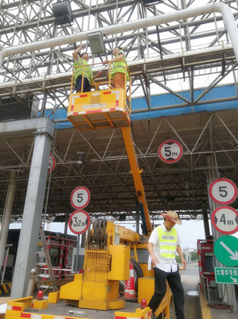 圖為工作人員對天線聯調測試 8日9日中午1點30左右,正是一天中最熱的時間,天線廠家帶著設備來到收費所,中心人員便放棄午休時間和早已在外廣場待命登高車駕駛員一起,協助廠家技術人員更換離地面6米余高的RSU天線盒。由于天線盒上方沒有安裝任何遮擋設備,長年日曬雨淋導致上方固定螺栓都出現生銹打滑,拆卸難度徒增,不到十分鐘,我們工作人員便濕透了全身,但大家還是咬咬牙,為盡快恢復車道正常行駛,保證車道便捷暢通而繼續埋頭苦干。在經過近一個小時努力,終于將新的天線盒成功安裝,最后經過聯調測試,恢復了車輛正常讀卡。 通過對新天線盒“上任”后數天觀察,發現該ETC車道讀卡失敗率明顯下降,車輛通過率達到了99.7%。如此一來,大大提高了車輛通行效率,距打造“智慧高速”目標又邁進了一步。