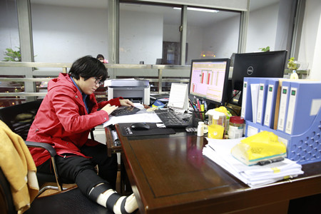 “沒(méi)關(guān)系的,我雖然腳受傷了,但是核對(duì)資料、處理數(shù)據(jù)絕對(duì)沒(méi)問(wèn)題。”集團(tuán)股權(quán)投資部李茜茜右腿綁著繃帶斜放在凳子上,雙手在鍵盤(pán)上飛快地敲打著,她這樣帶傷上崗已有半個(gè)多月。在她的辦公桌上常能看到一堆堆股權(quán)收購(gòu)資料,電腦屏幕上顯示著一排排密密麻麻的各類(lèi)數(shù)據(jù),這些數(shù)據(jù)被分門(mén)別類(lèi),制作成各種表格。