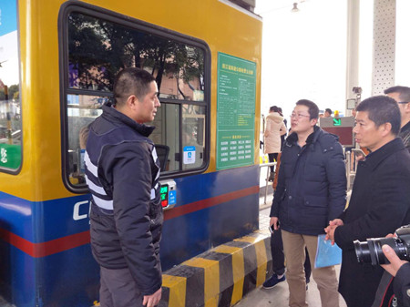 圖為收費站現(xiàn)場觀摩培訓(xùn)現(xiàn)場 據(jù)悉,該支付方式即將在全省高速公路378個收費站全面實行。 日前,省公路管理局印發(fā)了《全省高速公路通行費全面支持支付寶移動支付實施方案》,標(biāo)志著全省高速公路通行費將全面支持支付寶移動支付。在前期滬杭甬高速公路試運行支付寶移動支付通行費基礎(chǔ)上,省公路局聯(lián)系網(wǎng)絡(luò)公司已進一步完善了收費系統(tǒng),計劃在2018年3月前全面啟動。目前,支付寶公司已陸續(xù)在全省高速公路收費站進行相關(guān)設(shè)備安裝。