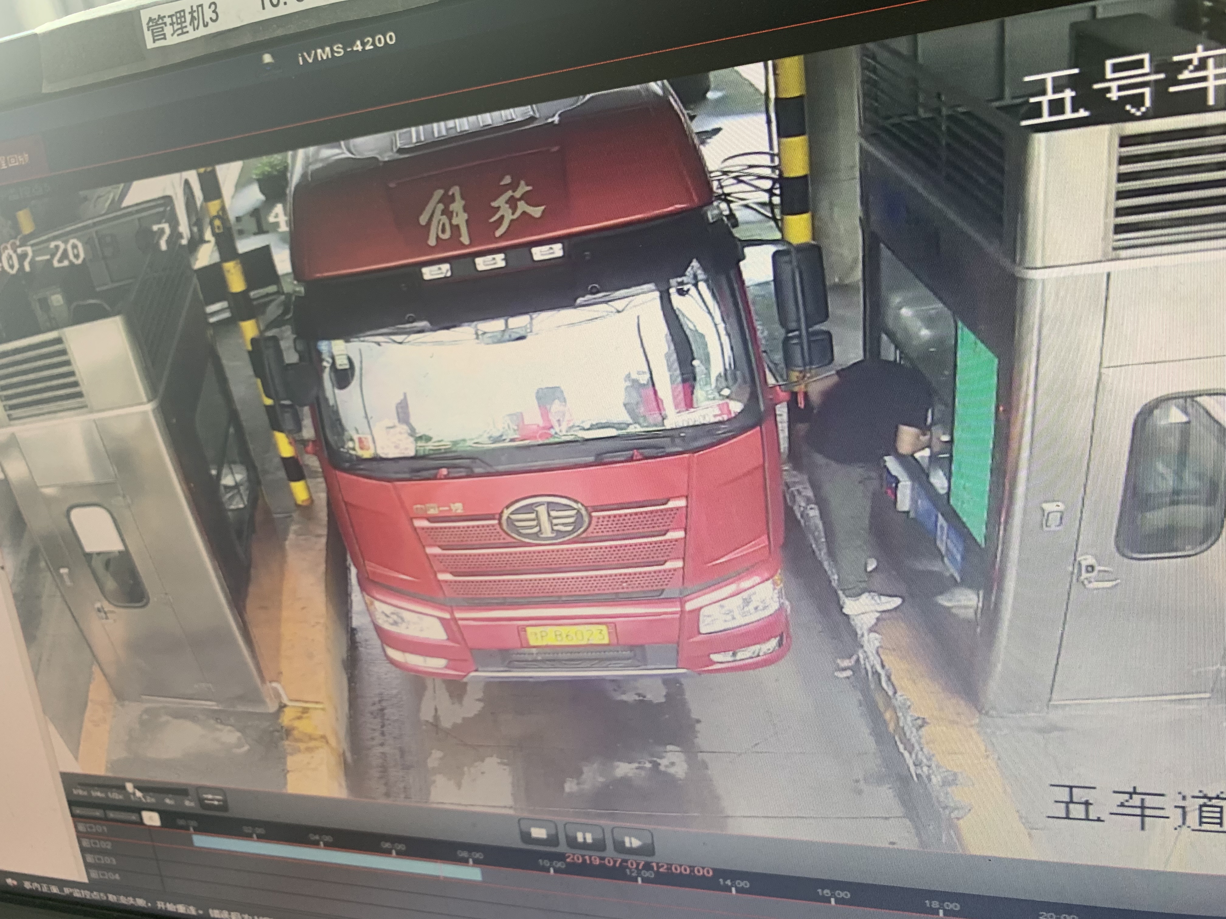 圖為失主遺落錢財現(xiàn)場 當(dāng)天上午,收費班長李寧巡查時在第五車道窗口附近發(fā)現(xiàn)了三百元現(xiàn)金,經(jīng)多方確定不是所內(nèi)工作人員遺失后,判斷為過往司機不小心遺失。為了盡快找到失主,李寧隨即去監(jiān)控室調(diào)取視頻查找。 經(jīng)過監(jiān)控查找,馬上鎖定了一輛車牌為“豫”字開頭的大貨車。原來當(dāng)時因駕駛室距離窗口較遠,司機下車付錢,監(jiān)控中清晰顯示司機在掏錢繳費時三百塊現(xiàn)金從口袋里掉到車道上,但是司機因為趕路絲毫沒有發(fā)覺。確認失主后,工作人員查詢司機電話并取得聯(lián)系,告知其遺失三百現(xiàn)金,在通過微信確認身份后,李寧將錢轉(zhuǎn)給了司機。