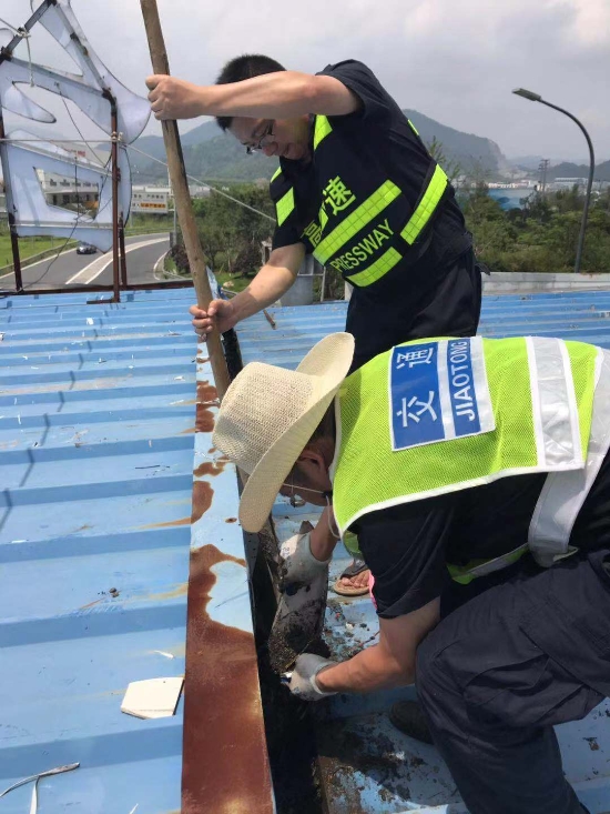 為切實做好今年第9號臺風“利奇馬”各項防御工作,確保臺風期間轄區(qū)高速公路安全暢通,工程部機電設(shè)備維養(yǎng)中心提前對集團所轄路面及收費站機電設(shè)備進行了全面部署,消除安全隱患,全力防范強臺風。 全面清除收費頂棚及下水管道垃圾。集團沿線收費頂棚經(jīng)過幾次的施工裝修,遺留了一些裝飾垃圾,如不及時清理一旦掉入排水溝或下水管道,勢必會造成頂棚漏水,影響下面人員及設(shè)備安全。8月7日,維養(yǎng)中心組織班員在登高車協(xié)助下,頂著炎炎烈日,利用垃圾夾、鐵鍬等工具對沿線收費站收費頂棚上方垃圾、排水溝中的淤泥進行了逐一清理,并重新鋪設(shè)排水溝上面的防護網(wǎng),防止臺風期間吹來的一些塑料紙袋等輕型垃圾再次堵塞下水道。