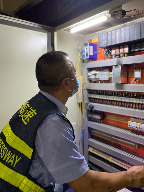 雖然隧道內(nèi)沒有烈日的灼燒,但日均4萬的車流,加上尾氣排放,導(dǎo)致隧道內(nèi)的氣溫遠(yuǎn)高于室外。當(dāng)室外37°C時,整個隧道里宛如一個蒸籠。盡管如此,廣場上、電纜溝上隨時都有執(zhí)勤隊員忙碌的身影。他們來回徒步穿梭隧道,檢查指示燈、消防設(shè)備箱、緊急電話、火災(zāi)報警等設(shè)施設(shè)備,排查各類安全隱患,修復(fù)受損設(shè)備,處理各種突發(fā)情況。一趟下來臉和胳膊被得黝黑,口罩、衣服濕了又干、干了又濕,盡管工作量大、強(qiáng)度高,他們從不喊苦說累。
