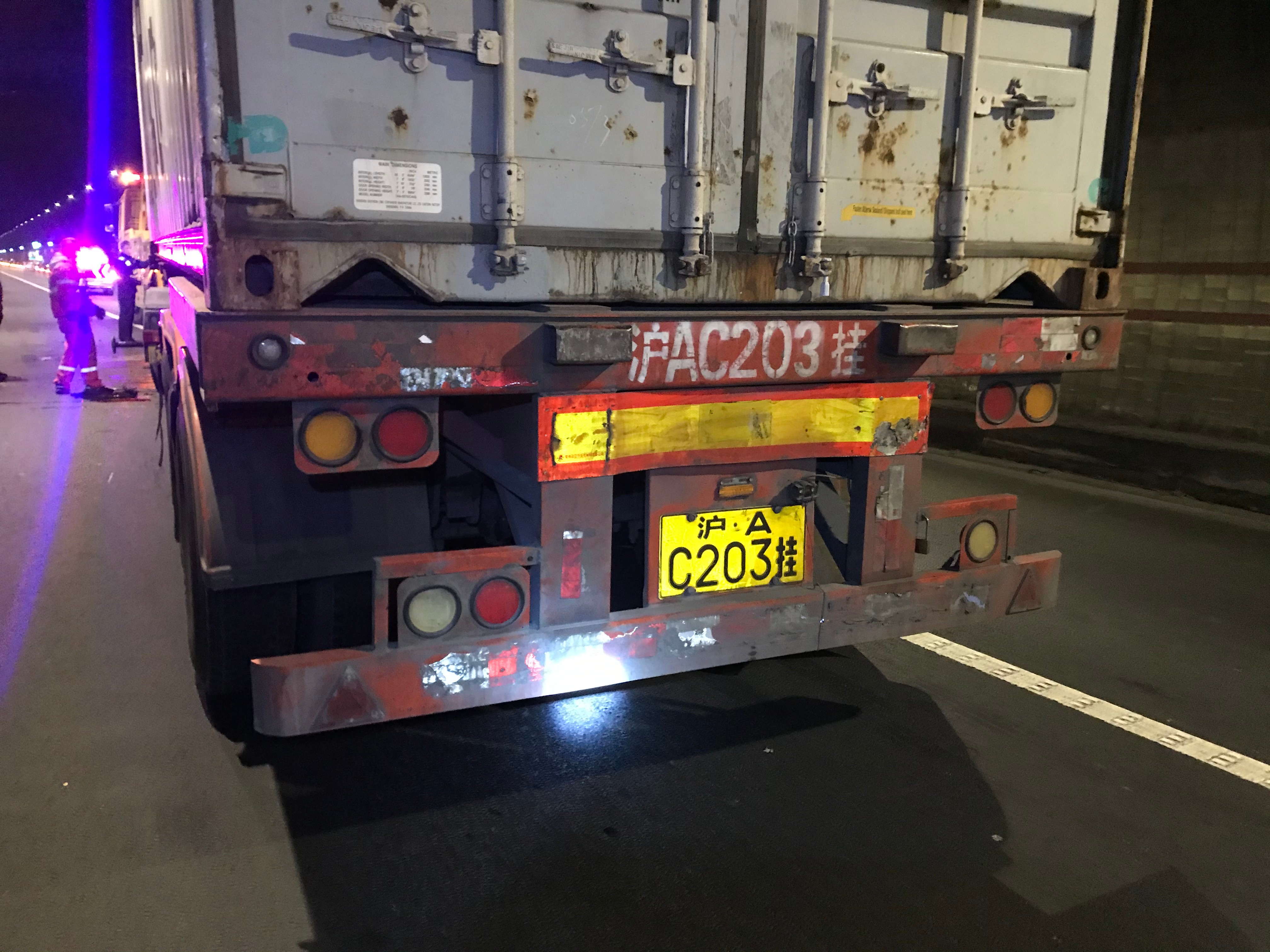 114日晚21:30分,甬臺溫高速寧波方向距離臺州南收費站約5公里的路段,一輛半掛車與一輛小轎車發生碰撞,現場急需一大一小兩輛拖車。