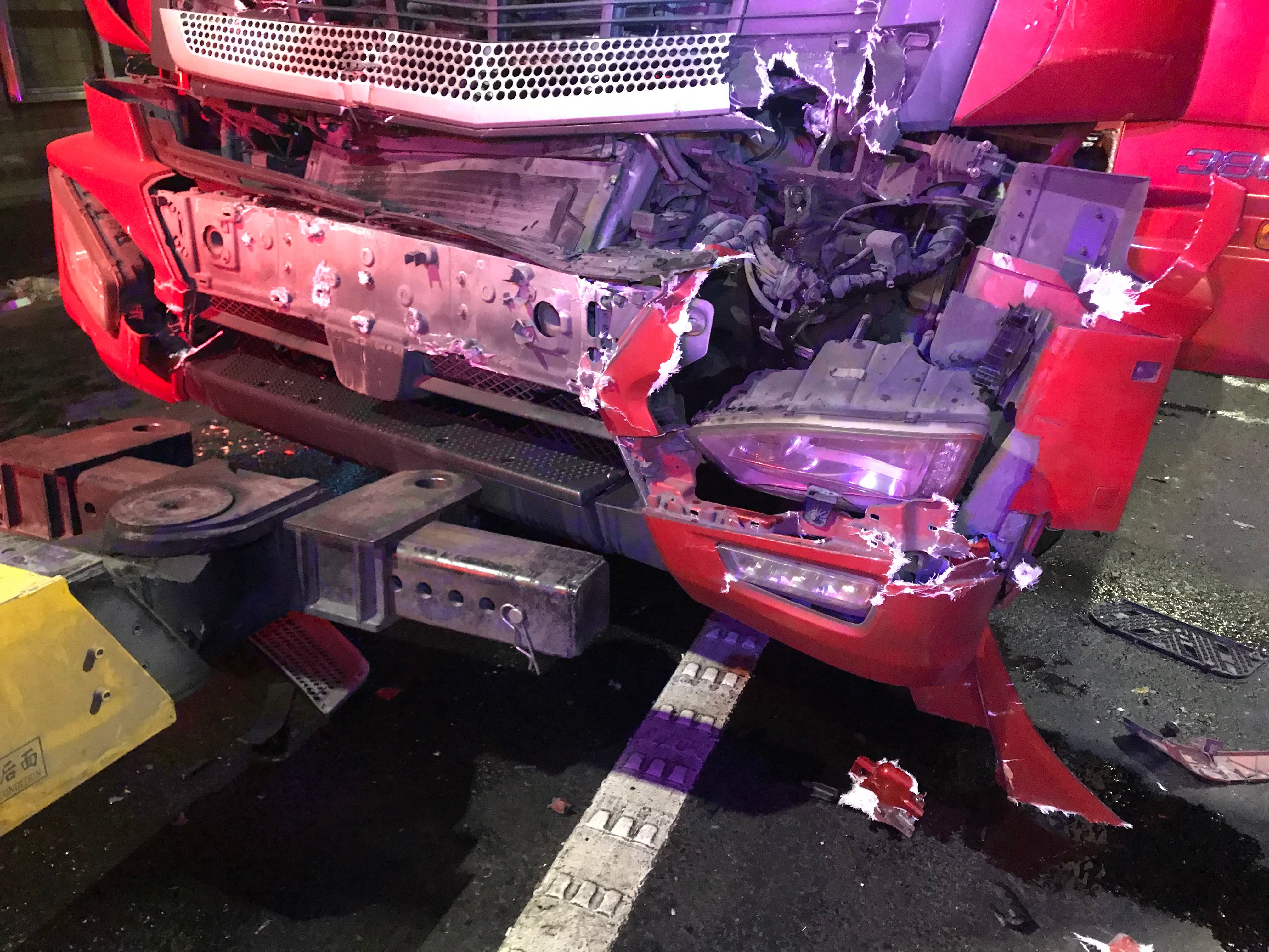 距離事故點最近的院橋駐點施救人員陳偉與潘志平接到指揮中心指令后分別駕駛一輛小拖車和一輛大拖車趕往現場進行拖車施救。在途經事故堵車后方路段時,另外一輛半掛車與兩輛小轎車追尾并撞到中央護欄,為了確保路段盡早通暢,他們決定將這起剛發生事故的車輛先拖離,前方事故則由黃巖駐點人員前來施救。