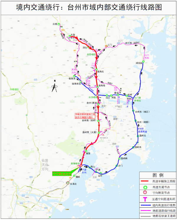 (二)臺(tái)州市域出入境繞行線(xiàn)路