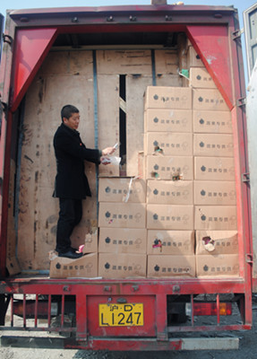 今年3月1日凌晨2時許,一輛標(biāo)有“蔬菜特供”、車牌號為滬DL1247的紅色廂式貨車駛進(jìn)臺州高速公路臺州收費(fèi)所“綠農(nóng)車”專用收費(fèi)道口,出口司機(jī)申報“綠農(nóng)車”運(yùn)送蘋果,要求減免通行,讀卡后顯示該車免費(fèi)金額為250元,收費(fèi)人員按規(guī)定對該車進(jìn)行開廂核查。
