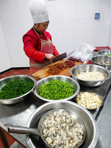 臺(tái)州的元宵節(jié)是從正月十四開始的。十四吃咸羹、十五吃甜的山粉糊。下午兩點(diǎn),臺(tái)州所的食堂大姐們就開始忙活了。 早在前幾天,來(lái)自臨海的食堂大姐利花,就開始為臺(tái)州所的元宵節(jié)準(zhǔn)備食材清單。在她的家鄉(xiāng)四岔,咸的糟羹里是要放海蠣的,她說(shuō)一到正月十四,滿街都會(huì)有剛從牡蠣殼里現(xiàn)挑出來(lái)閃著新鮮青色的海蠣肉賣,但在黃巖,找遍菜場(chǎng),只有冰凍的泛著白光的海蠣肉,也不是每天都有賣,有時(shí)還要靠運(yùn)氣才能買到。利花有些無(wú)奈,她想,都是離海不遠(yuǎn)的地方,為什么就沒有新鮮的海蠣?她也許不知道,在黃巖一帶,大家還是喜歡吃甜的山粉糊,所以不需要海蠣。