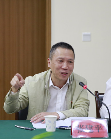 圖為集團黨委副書記、副董事長、總經(jīng)理張建平介紹集團相關(guān)情況