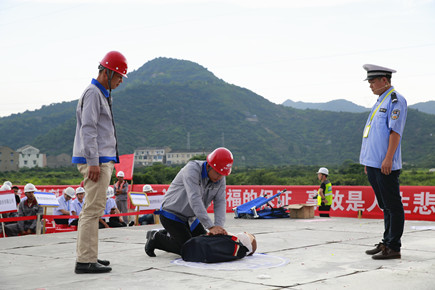 7月5日下午,根據(jù)“安全生產(chǎn)月”活動(dòng)安排,內(nèi)環(huán)路(黃巖段)四個(gè)標(biāo)段的施工、監(jiān)理單位分別派出代表隊(duì),在內(nèi)環(huán)北路(黃巖段)第四標(biāo)段施工現(xiàn)場,依次開展消防、現(xiàn)場急救和意外窒息事故的應(yīng)急救援演練。
