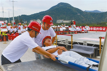 7月5日,在市內(nèi)環(huán)路(黃巖段)7+120-10+170工程施工現(xiàn)場,救援人員將“高處墜落”工人抬向救護車輛。當(dāng)日,內(nèi)環(huán)路(黃巖段)舉行了應(yīng)急救援演練活動,演練以分組競賽的形式舉行。施工單位、監(jiān)理單位及臺州高速市政建設(shè)投資有限公司員工等近200人參加了演練。 http://paper.taizhou.com.cn/tzrb/html/2017-07/07/content_818958.htmfrom=singlemessage&isappinstalled=0
