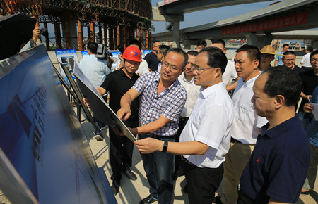 圖為市委書(shū)記王昌榮在6#立交查看工程進(jìn)度展板